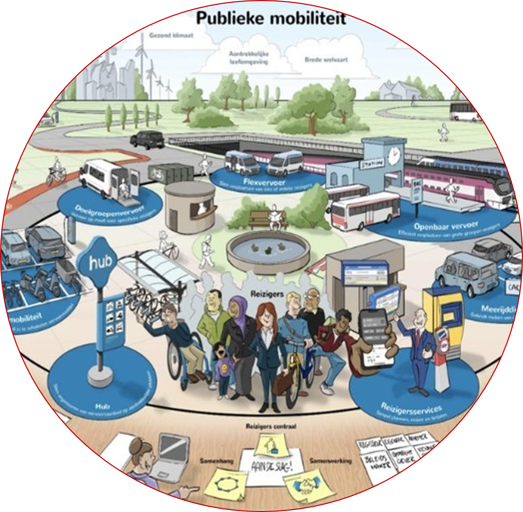 Publieke mobiliteit is de beste manier om van A naar B te komen met het mobiliteitsaanbod dat onder regie staat van de overheid. OV wordt daarbij gezien in samenhang met het doelgroepenvervoer, deelvervoer, Mobility as a Service (MaaS), knooppunten en vrijwilligersvervoer.